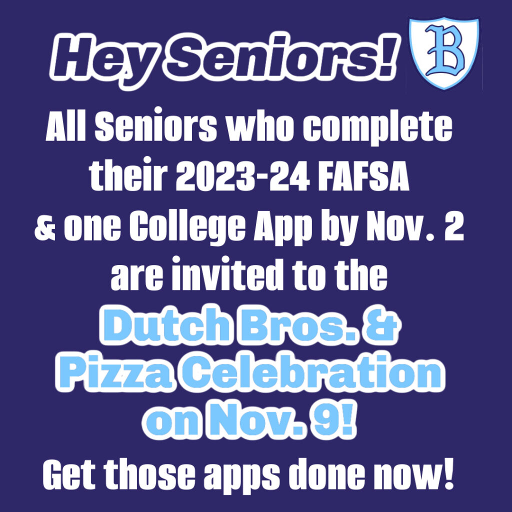 Seniors who are going to college next year need to complete some next steps. Here are 2 resources to help you complete Financial Aid next steps and send your Bullard transcript to your 4 year college.