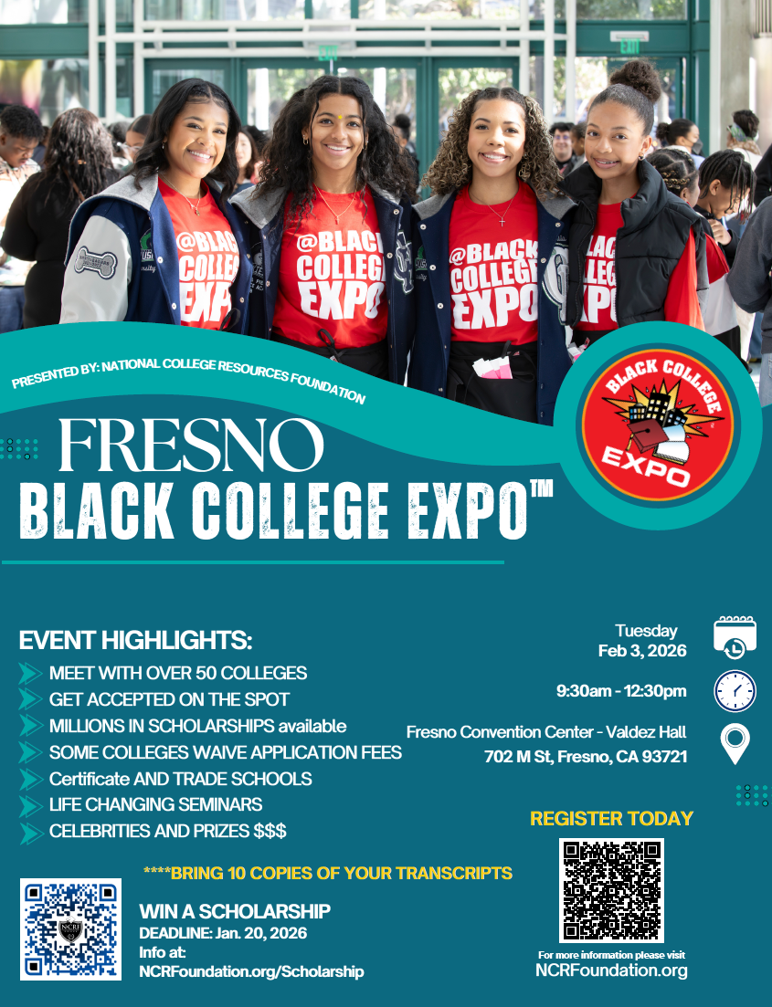 The Black College Expo will be in Fresno on Feb 3. If you would like to ride the bus from Bullard to attend, please come get a permission slip in the counseling office.