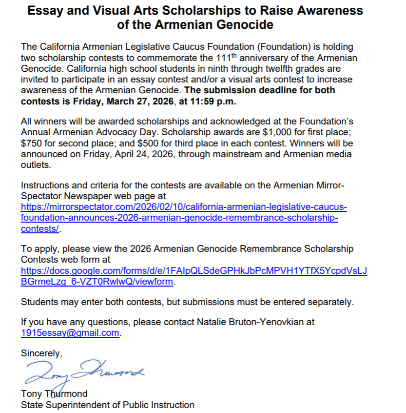 2026 Armenian Genocide Essay and Visual Arts Contest