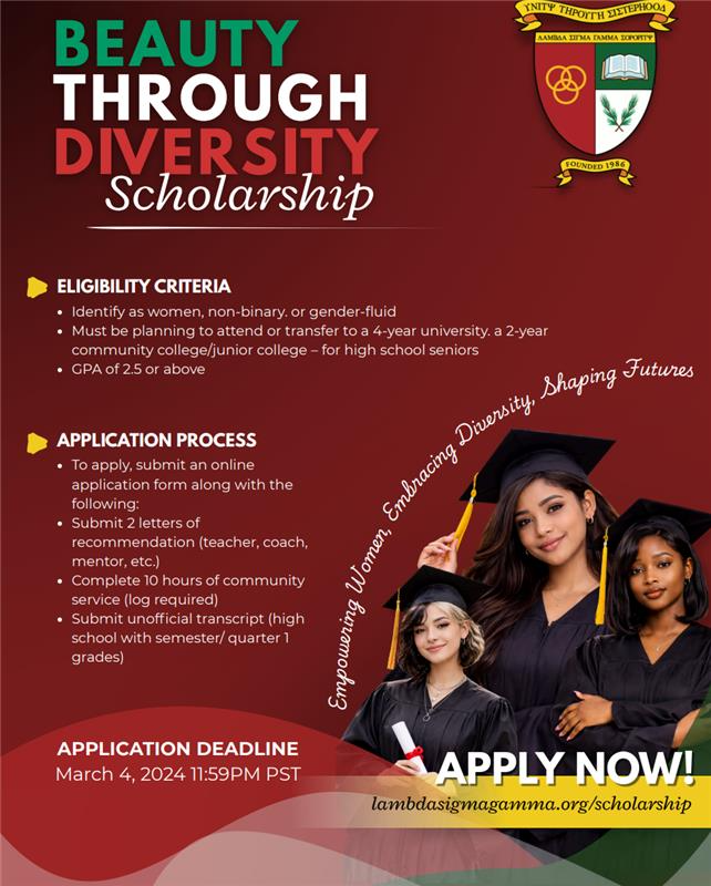 | California Department of Transportation (Caltrans) [District 6] Scholarships (2) Criteria for Selection: Be a graduating High School Senior related from District 6/Central Region: Fresno, Kern, Kings, Madera, and Tulare Counties Possess a GPA of 2.5 or better Plan to attend a university or junior college, or trade school Plan to pursue a career in one of the following fields or other related transportation field: Accounting, Anthropology, Archaeology, Animal or Plan Biology, Business Administration, Communications, Construction, Electrical Engineering, Environmental Science, Equipment Operations, Graphic Design, Human Resources, Information Technology, Landscape Architecture, Legal, Planning, Project Management, Real Estate, Surveying [Employee Family Scholarship ONLY] Be related to a current, former, or retired Caltrans District 6/Central Region employee Deadline: March 27, 2026. Apply Here: District 6 Scholarships | Caltrans |